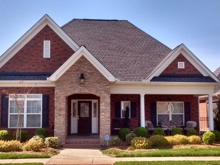 HOA community free maintenance to outside landscape with large Over sized 2 car garage ,Room for work bench and pull down steps for attic storage. Only about 7 units with stacked stone around front door entry sold. Home warranty for 12 months included