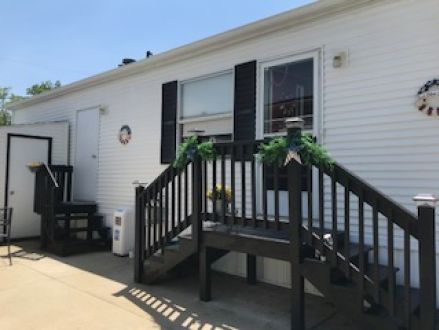 2005 Happy Home 2bd,1ba. Well-kept & maintained manufactured home. Custom Jack-n-Jill front stairs w/solar post lights, neutral modern interiors, wood laminate floors most rooms, beautifully landscaped exterior. $427 lot fee. NO DEALERS considered.